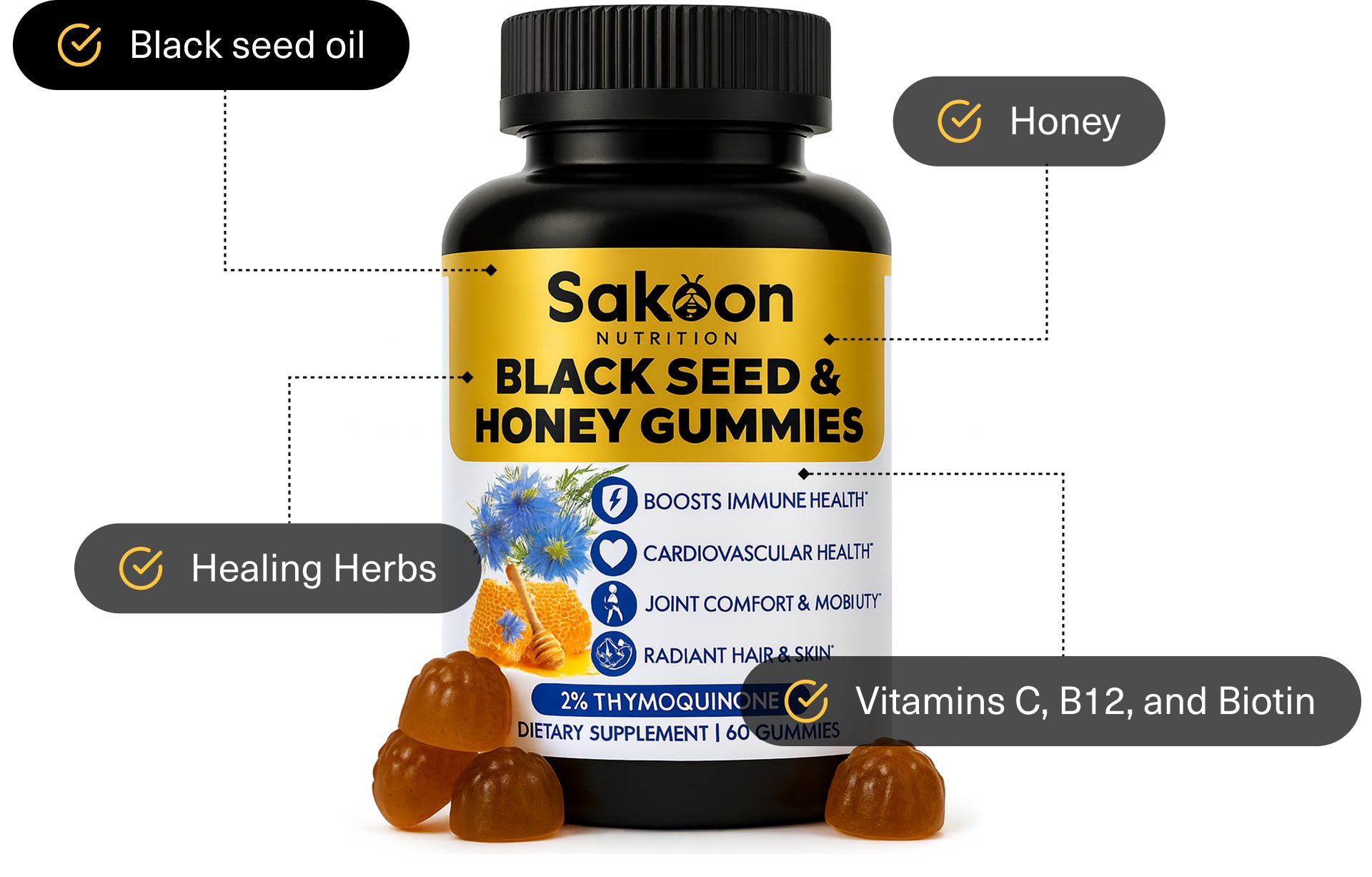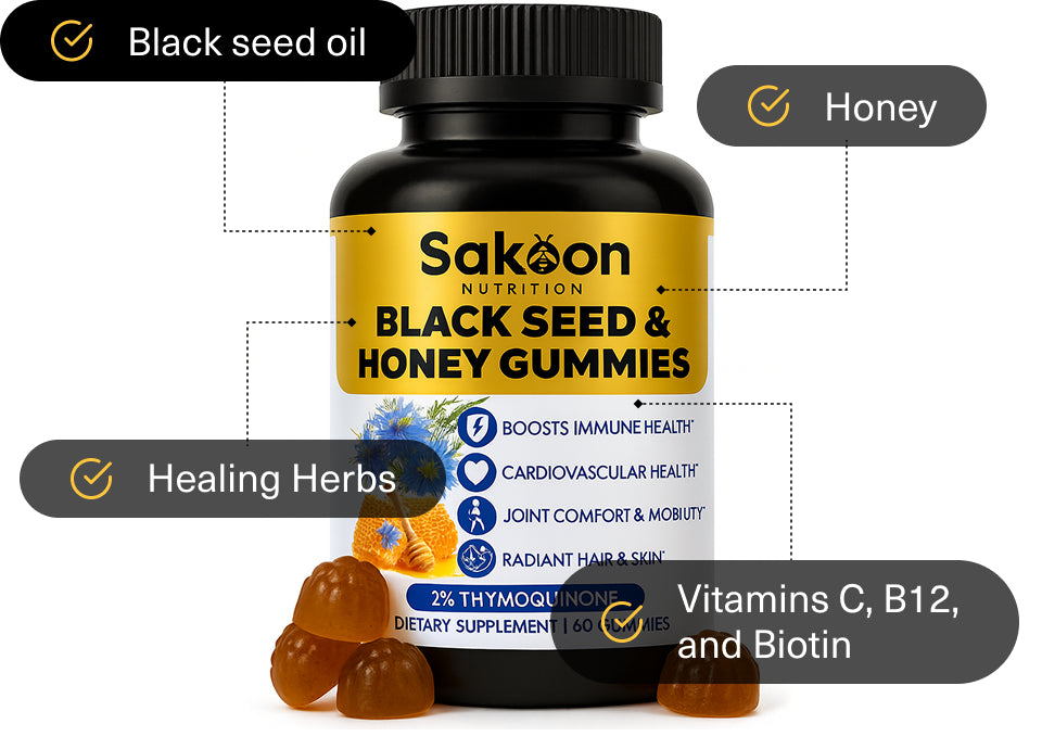 Over 3,000 years of tradition and modern science back Sakoon’s Black Seed & Honey Gummies.
